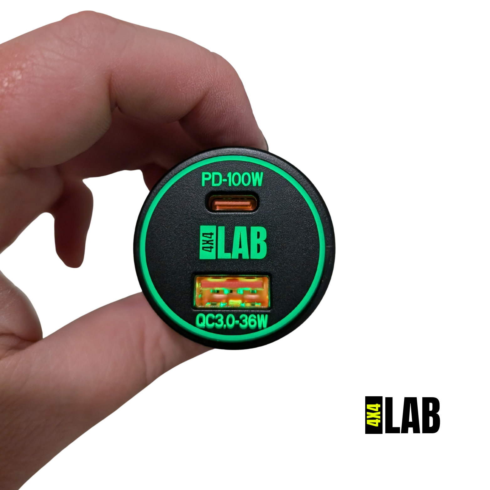4x4LAB 100W Dual USB Socket – USB-C PD + USB-A QC (Green Backlit)