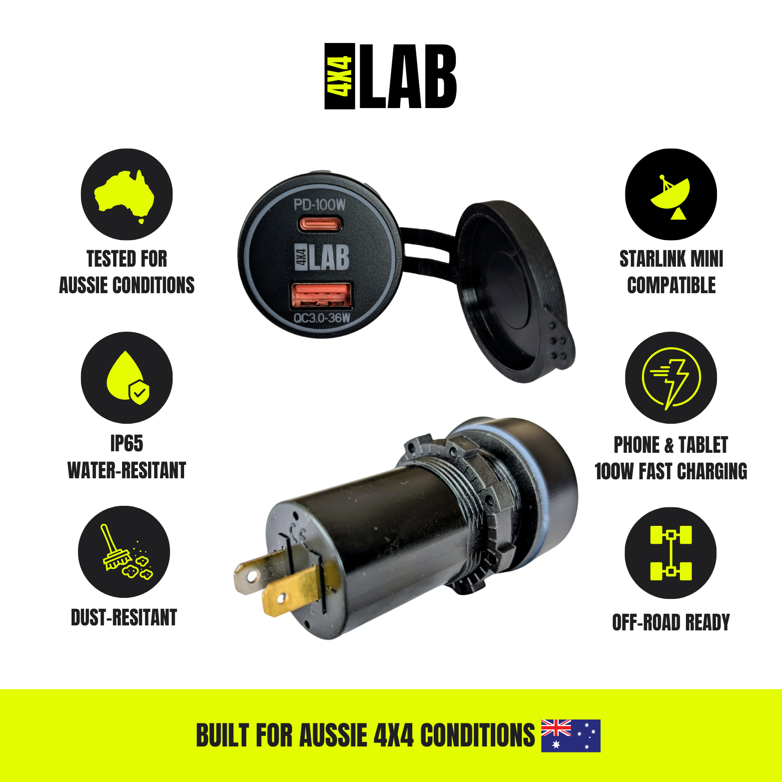 1 × 4x4LAB 100W Dual USB Socket (USB-C PD + USB-A QC)