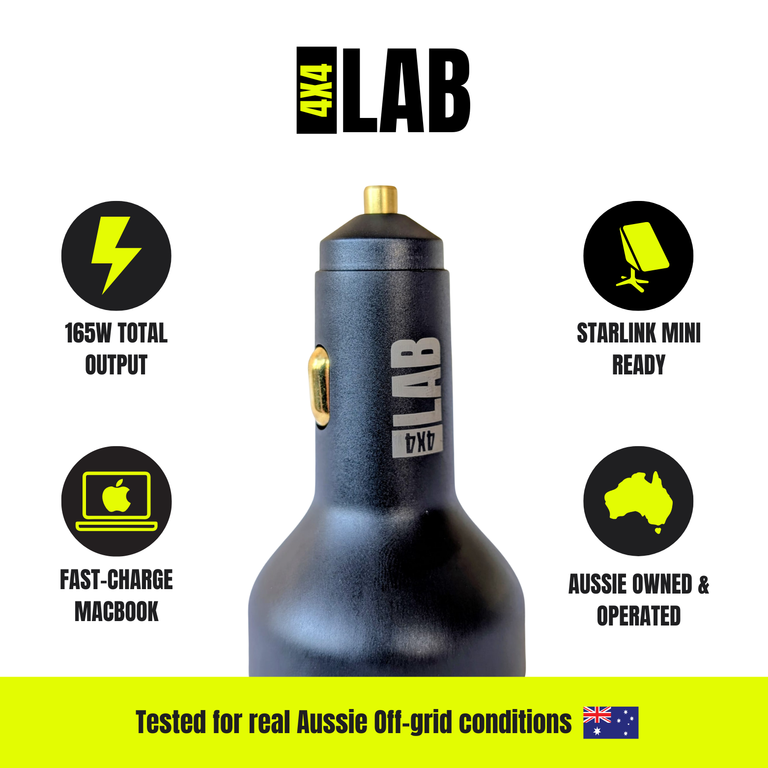 4x4LAB 165W USB-C Car Charger – Starlink Mini Ready (140W PD3.1) | 12V Fast Charger for 4WD, Camper & Caravan