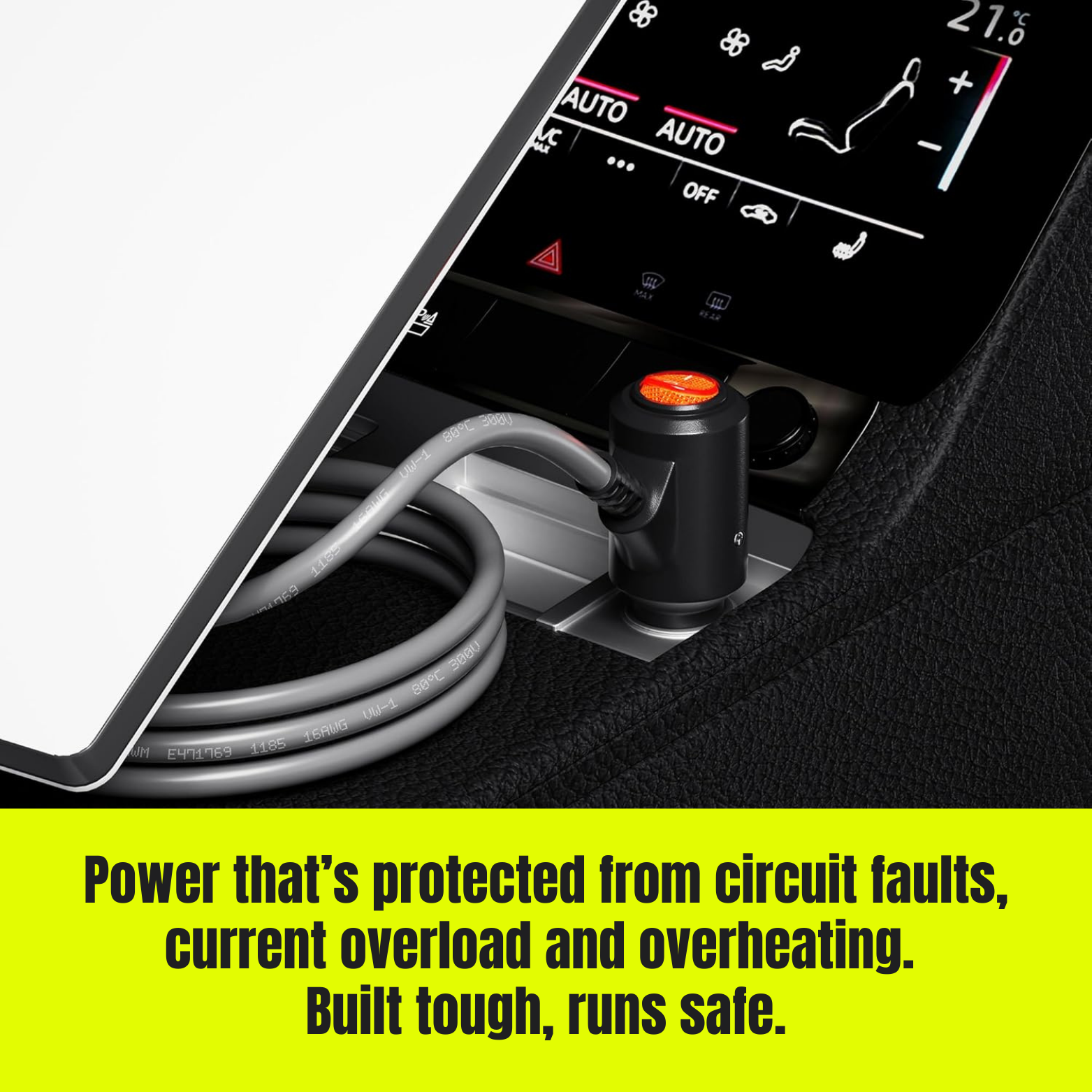 Secure Socket Fit: Reinforced connector head crafted to stay snug in your 12V/24V port, even on rough tracks and winding coastal drives.