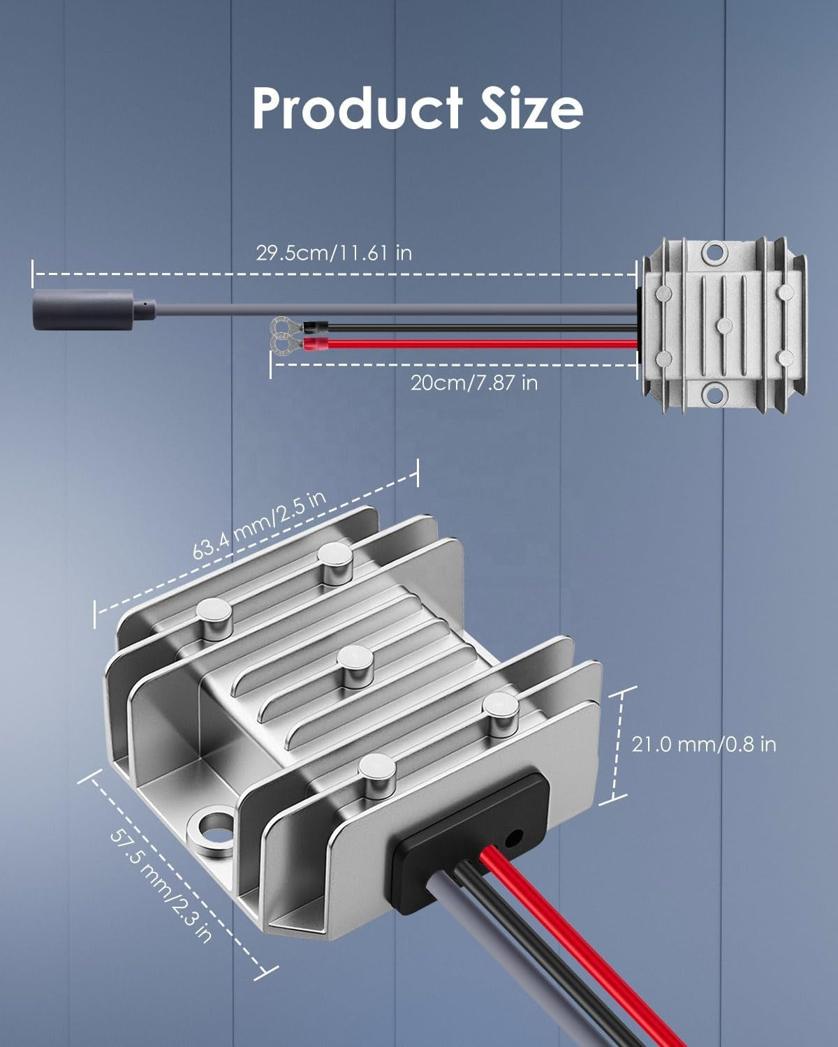 30cm output lead (18AWG) ready for extension or hard-wiring