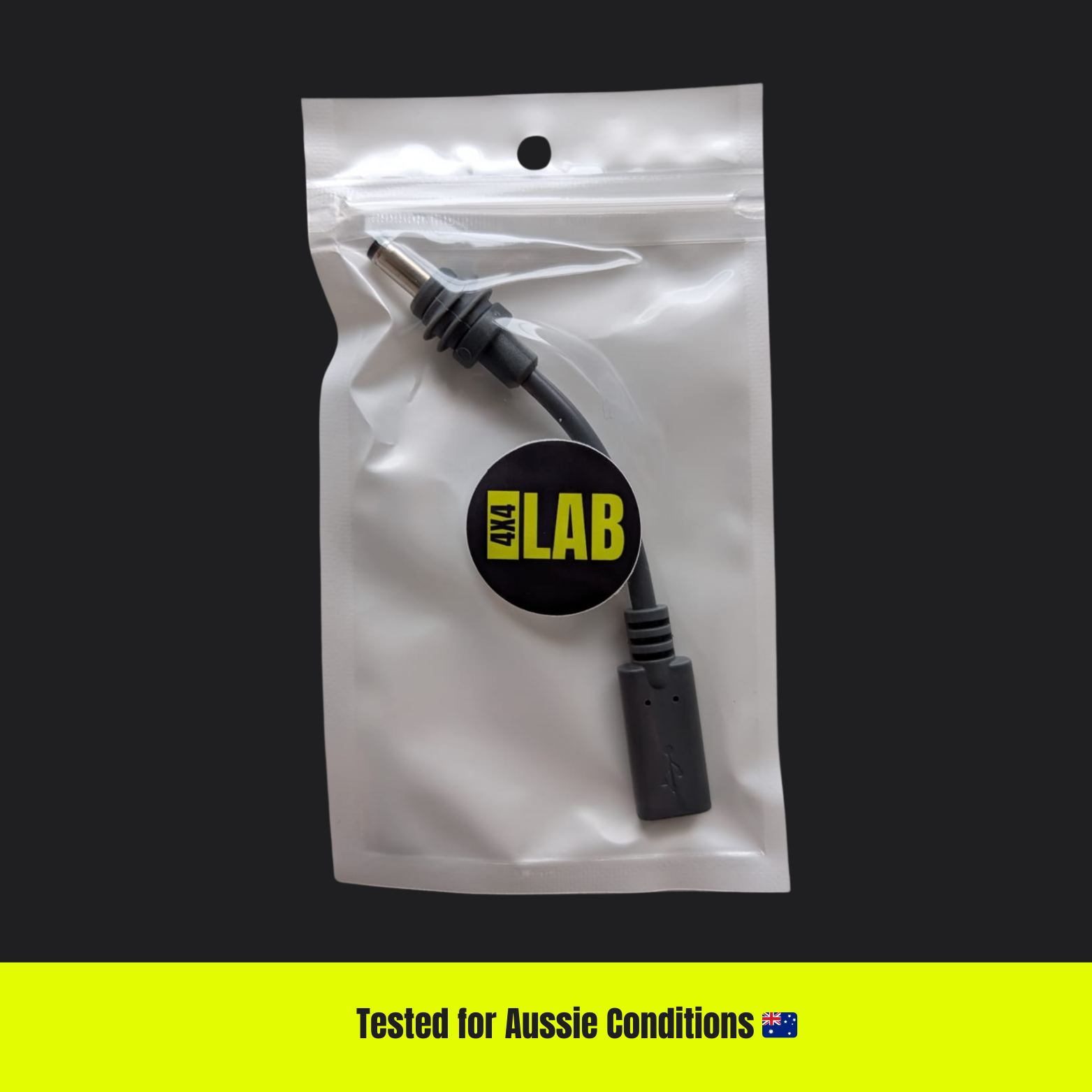 Simplify your Starlink Mini setup with the 4x4 LAB Male DC to USB-C Female Connector. This adapter converts the Starlink Mini’s 12V DC barrel plug into a USB-C female port, letting you use your own USB-C cable for a faster, cleaner connection—no more fiddling with the kickstand.