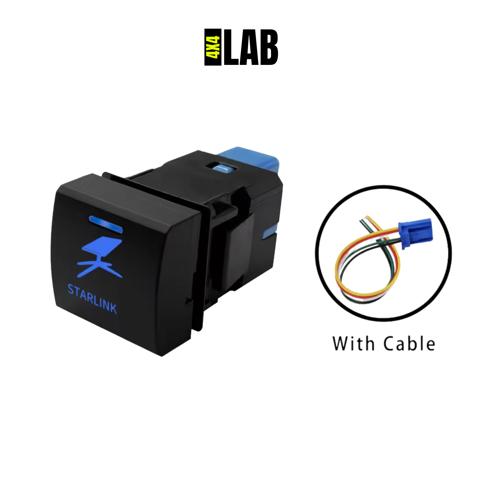 The 4x4LAB STARLINK Push Switch is a factory-style ON / OFF latching switch designed to integrate seamlessly into Toyota dashboards using the standard 22 × 22 mm switch cut-out. Featuring a laser-etched STARLINK icon and dual blue LED illumination, it delivers a clean, professional finish that looks right at home in modern Toyota interiors.